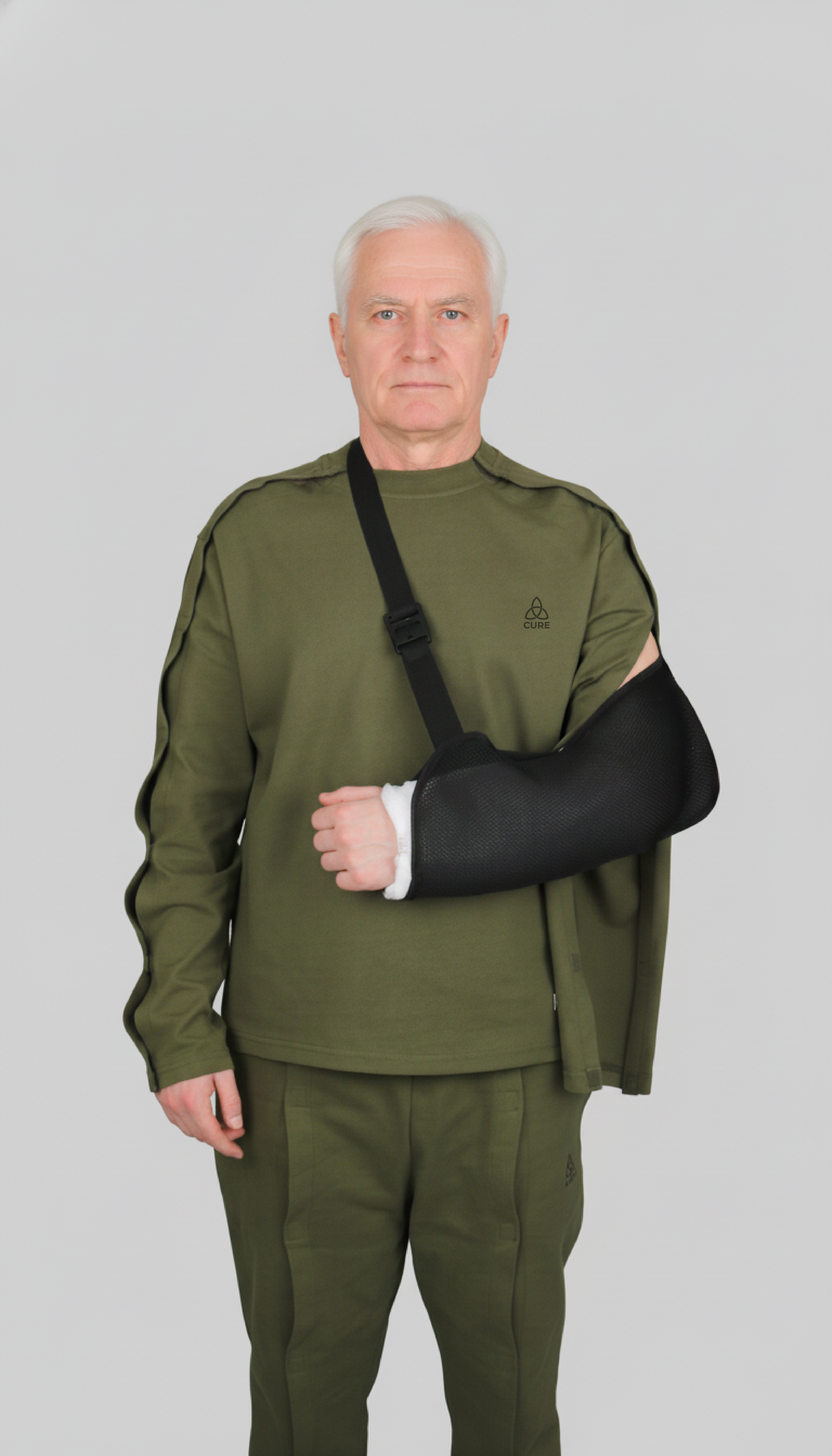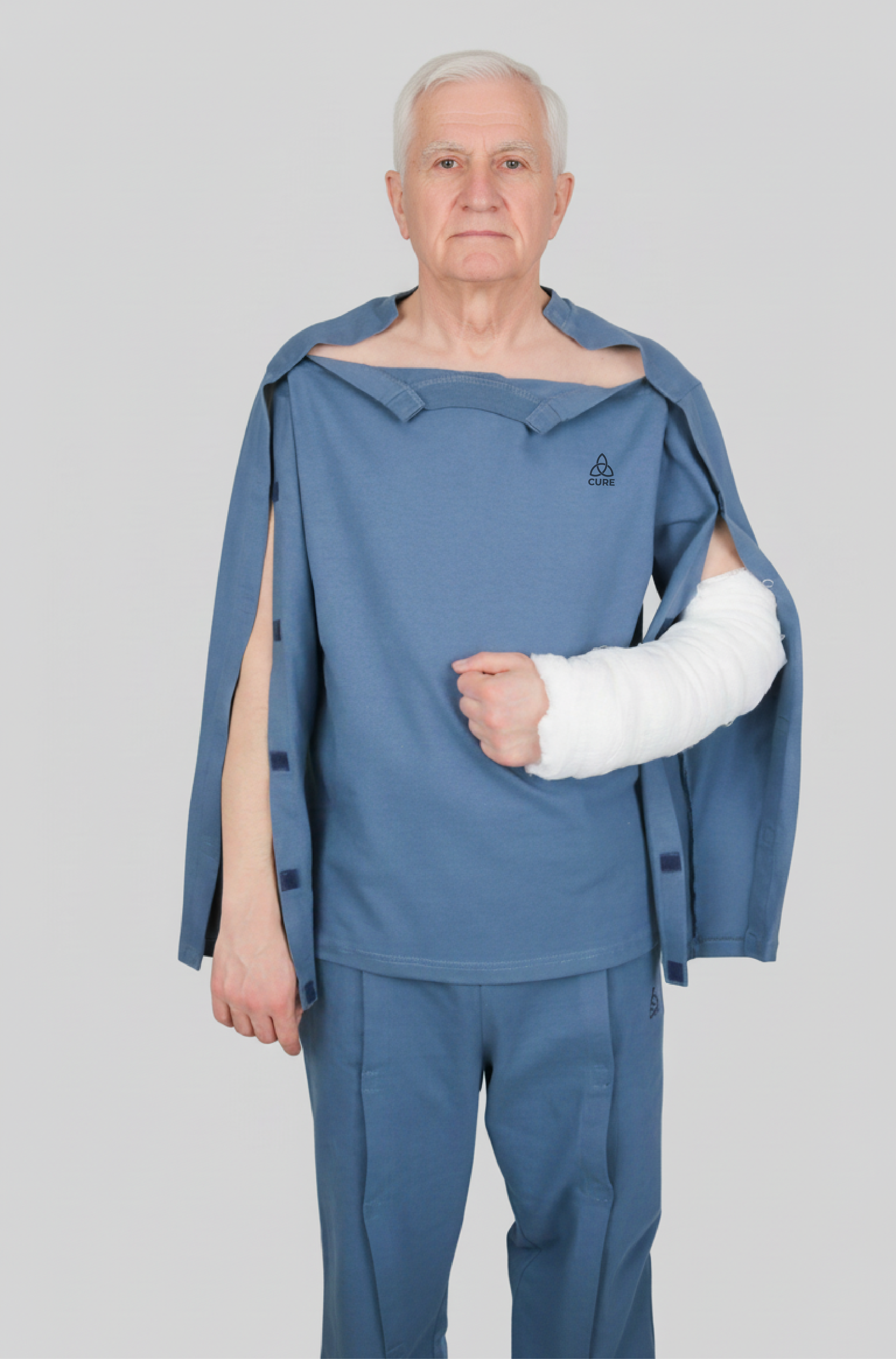 The "No-Lift" Dressing Solution Doctors often forbid lifting your arm after Rotator Cuff surgery or Clavicle fractures. Our smart design solves this with Easy-Fasten (Hook & Loop) strips on both shoulders and sides. The shirt opens completely flat. You simply slide it on and fasten it up—zero arm lifting, zero pain.