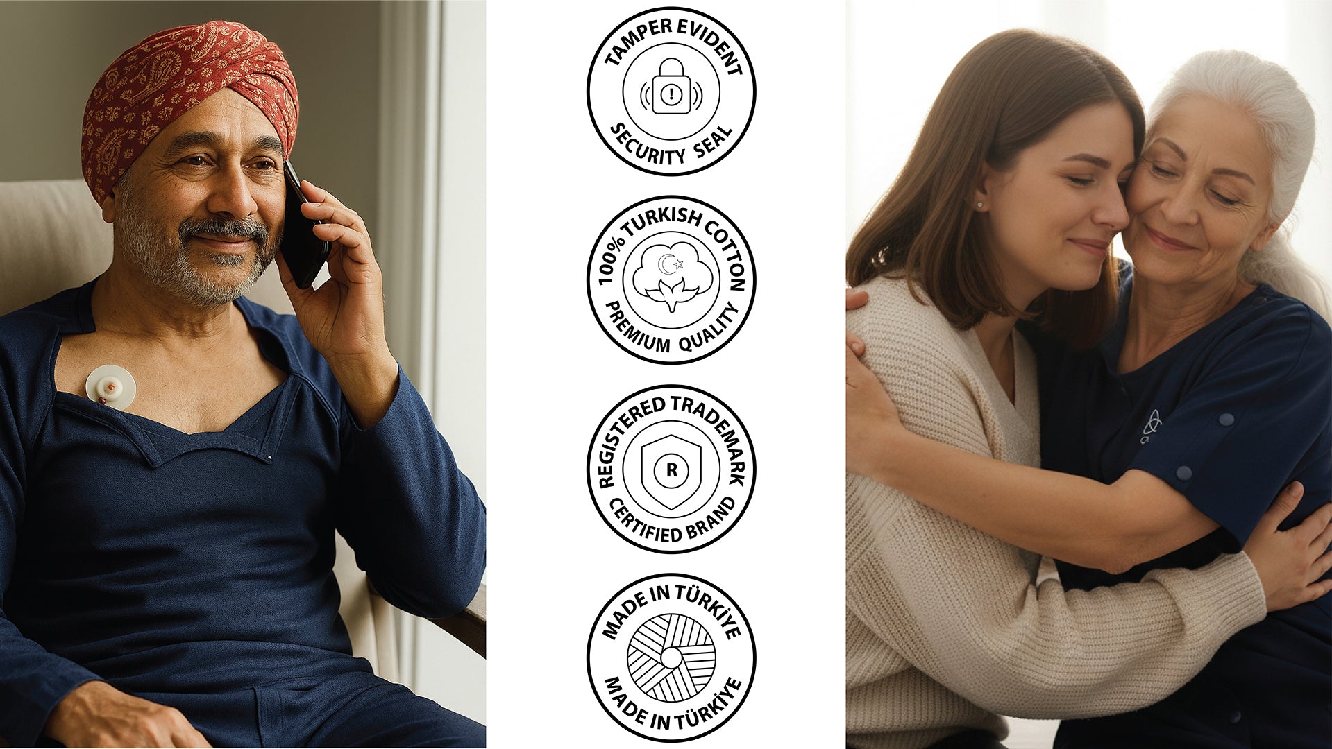 Because my father is bedridden, dressing him was very difficult. Thanks to Cure's products with zippers on the sides and between the legs, both his comfort increased and the care process became much easier for us.
